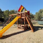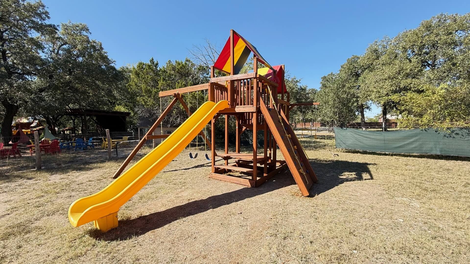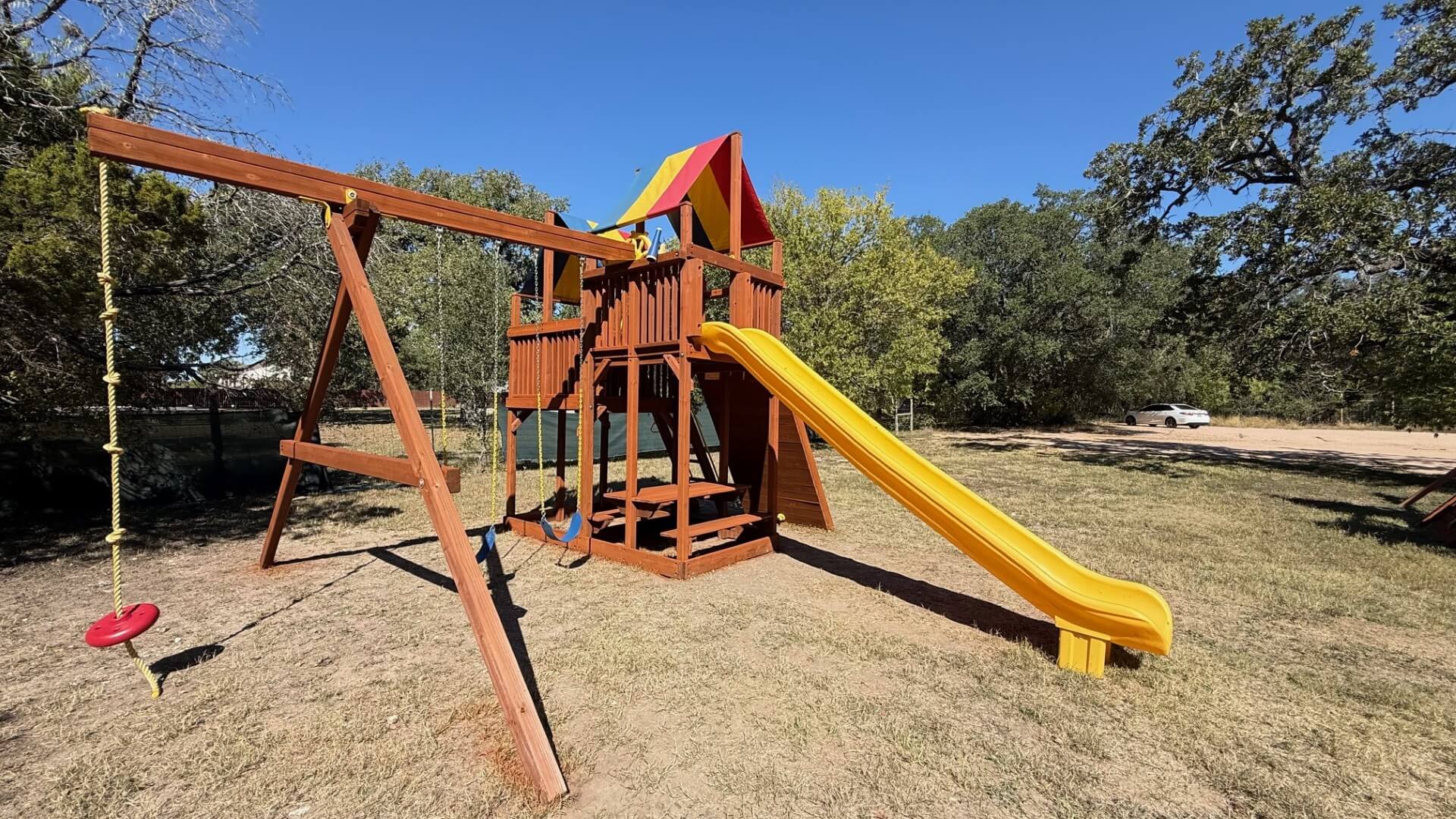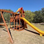 The Rainbow Play Systems 44A King Kong Clubhouse Pkg II is built for big backyard fun and lasting memories. Featuring a 7′2″ deck height, spacious 5.2′ × 7.8′ clubhouse fort, and a massive 14′ Safety Scoop Slide, this set delivers nonstop adventure. Kids can climb the rock wall, step ladder, or Jacob’s rope ladder, then swing on the 4-position swing beam with two sling swings, a trapeze combo, and a knotted rope with disc. A 360° tire swing adds spinning excitement below the deck, while fun accessories like a ship’s wheel, telescope, and binoculars spark imagination. Constructed from 100% solid cedar for superior strength, beauty, and durability, the 44A King Kong Clubhouse Pkg II is the ultimate centerpiece for any backyard, offering endless outdoor play for years to come.