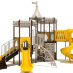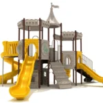 Unleash the inner knight or princess with Winslow, a magnificent castle-inspired playground designed for boundless fun and creativity. Featuring thematic architecture like a castle’s round roof and arched window panels, this structure transports children to a fantasy kingdom where they can rule their domain.